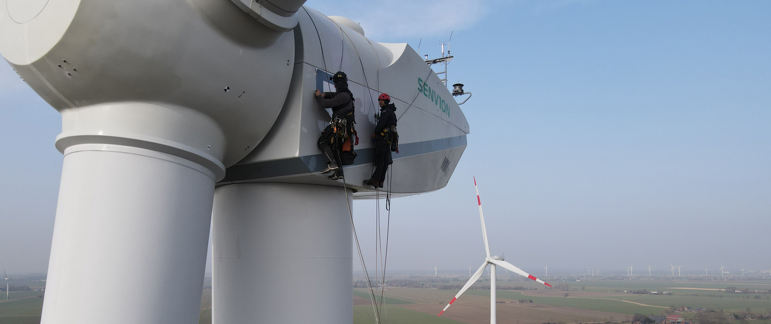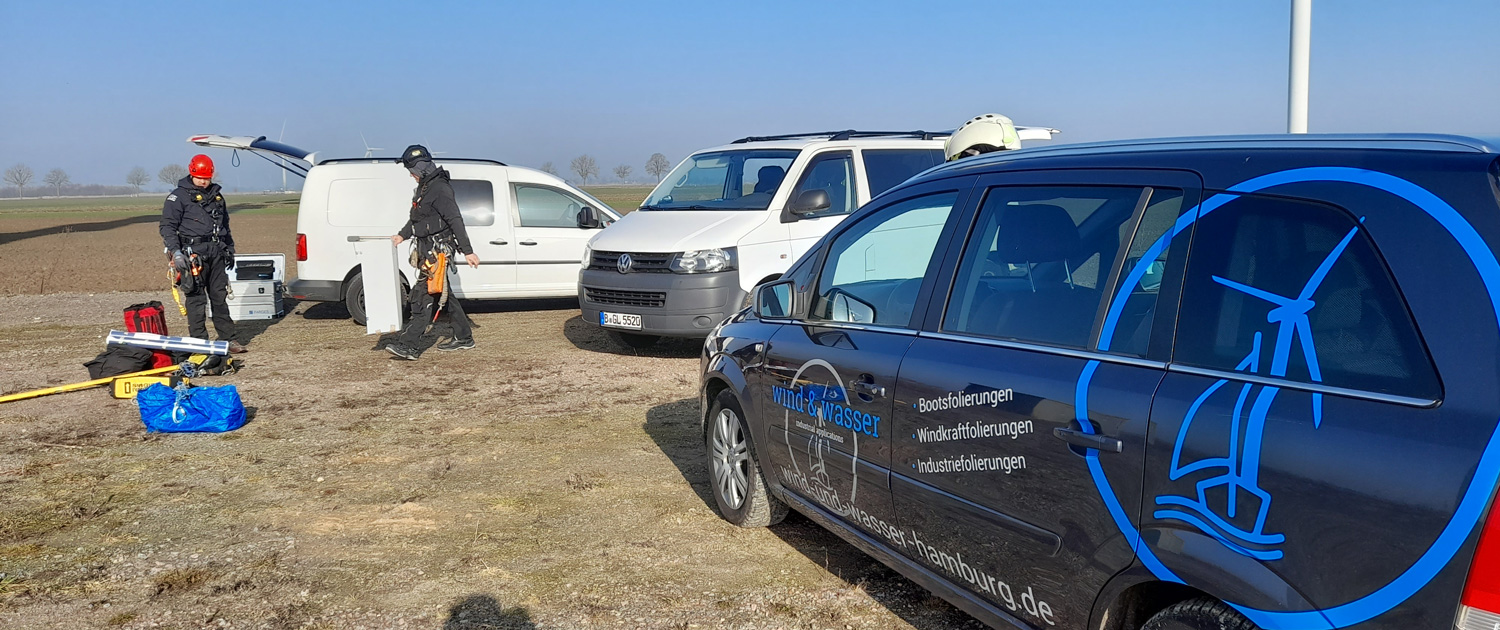 • Beklebung von Gondeln am Boden und an Bestandstürmen durch zertifizierte Industriekletterer